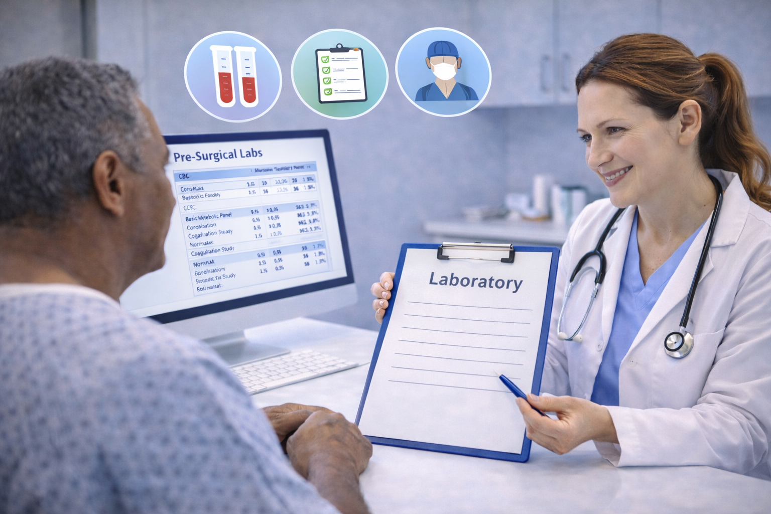 Pre-surgical evaluations including labs, physical examination, and clearance documentation to prepare you safely for surgery.